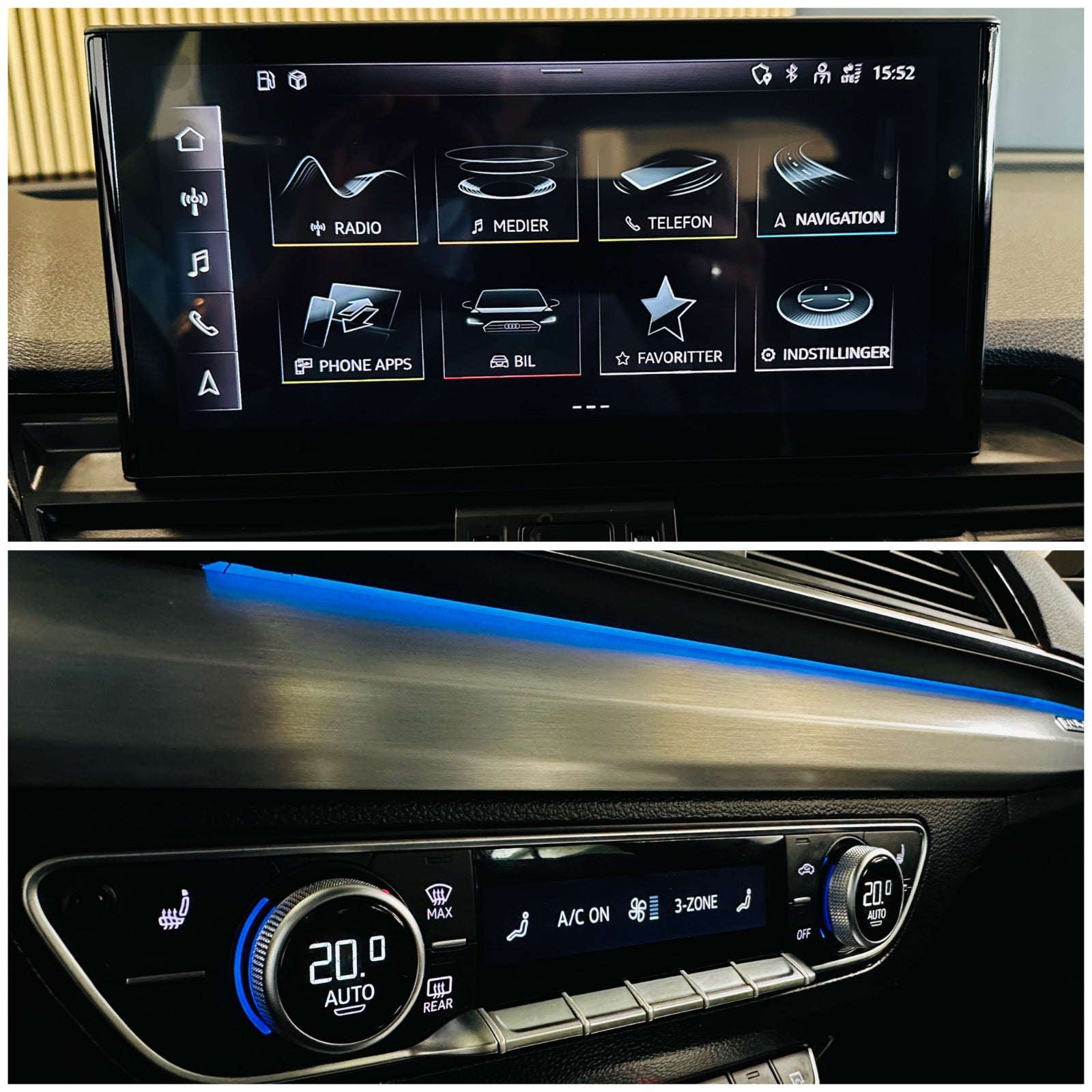 kørecomputer, digitalt cockpit, bagagerumsdækken, multifunktionsrat, læderrat, dellæderindtræk, sportssæder, højdejust. førersæde, højdejust. forsæder, splitbagsæde, ambiente belysning, justerbar lændestøtte, alufælge, 19" alufælge, el-sidespejle m/varme, el-klapbare sidespejle, fuld led forlygter, matrix led forlygter, dynamisk blinklys i bag, led baglygter, led kørelys, svingbart træk (manuel), tagræling, automatgear, aircondition, fuldaut. klima, 3 zone klima, centrallås, fjernb. centrallås, nøglefri tænding, adaptiv fartpilot, udv. temp. måler, sædevarme, el-ruder, 4x el-ruder, automatisk start/stop, el betjent bagklap, type-2 ladekabel, app integration, navigation, android auto, apple carplay, håndfrit til mobil, musikstreaming via bluetooth, usb-a tilslutning, bakkamera, parkeringssensor (for), parkeringssensor (bag), dæktryksmåler, isofix, antispin, vognbaneassistent, automatisk nødbremsesystem, automatisk lys, airbag, esp, lygtevasker, stemmebetjening, regnsensor, alarm, træthedsregistrering